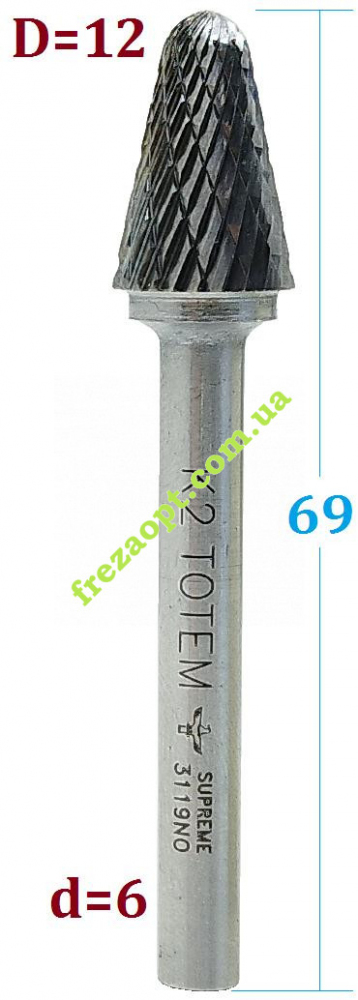 Шарошка сфероконус 12,7мм по металу, цанга 6мм // K2 TOTEM supreme 3119