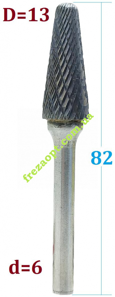 Шарошка сфероконус 13мм по металу, цанга 6мм // 856-133-06
