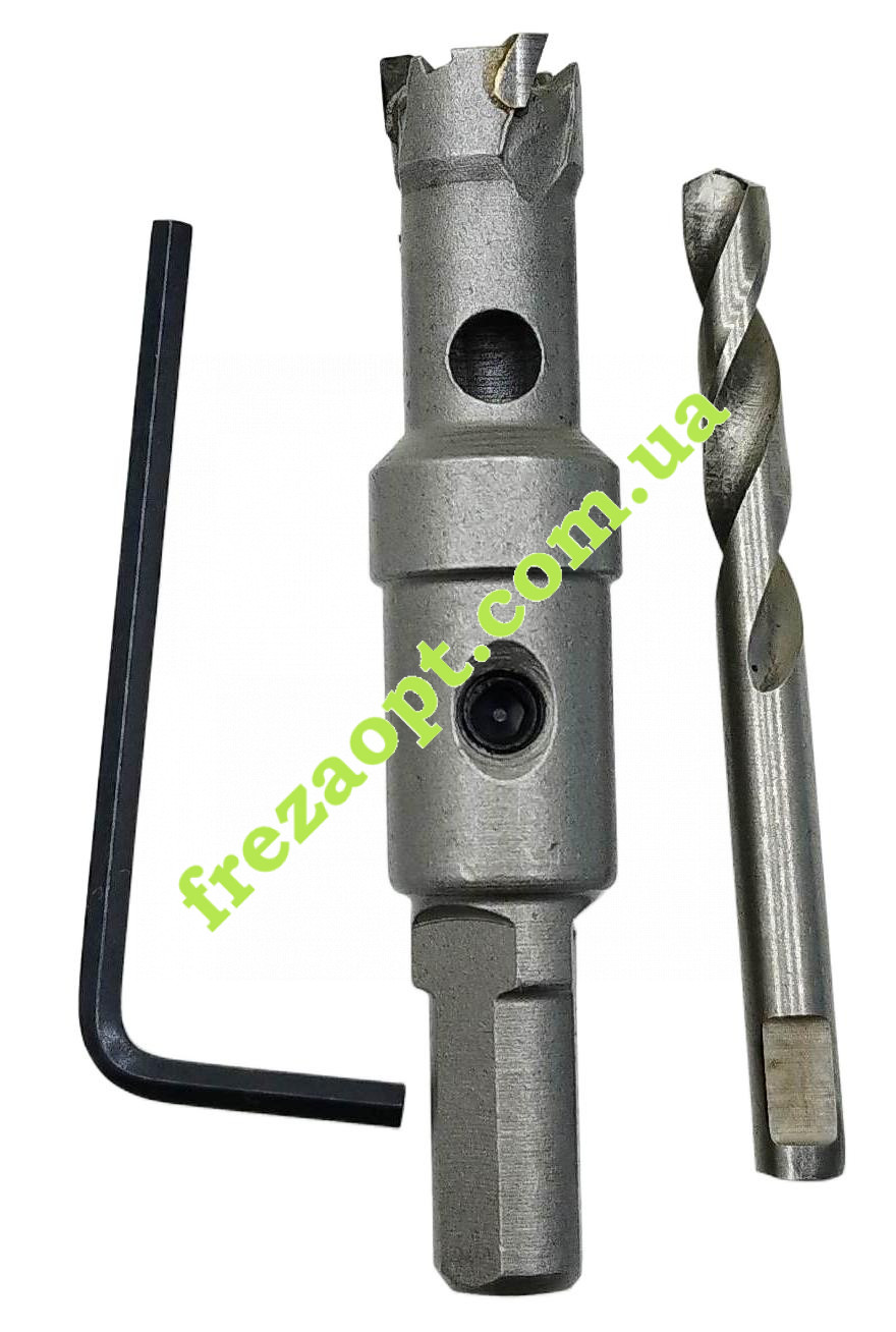 Данна коронка вважається універсальною. Вона ріже напайними твердосплавними пластинами. Аналізуючи відгуки користувачів і власні випробування, слід використовувати їх виключно по металу (саме використовування її для свердління отворів в листовому металі є найбільш доцільним). Також, вона без проблем буде свердлити деревину і похідні матеріали (плити), але краї різу будуть рваними (не охайними). Коронка має центровочне свердло.Габарити та характеристики: