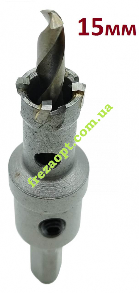 Данна коронка вважається універсальною. Вона ріже напайними твердосплавними пластинами. Аналізуючи відгуки користувачів і власні випробування, слід використовувати їх виключно по металу (саме використовування її для свердління отворів в листовому металі є найбільш доцільним). Також, вона без проблем буде свердлити деревину і похідні матеріали (плити), але краї різу будуть рваними (не охайними). Коронка має центровочне свердло.Габарити та характеристики: