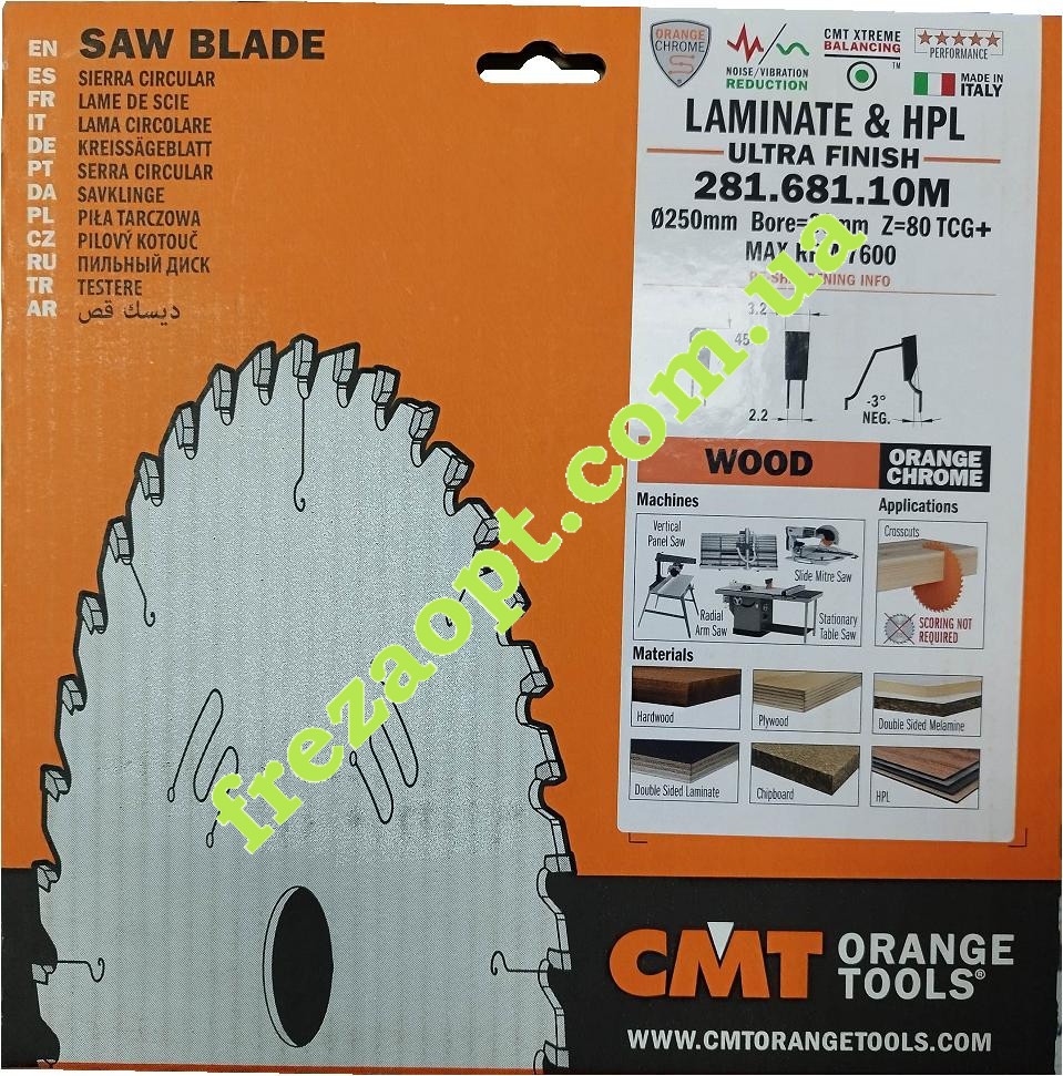 Дискова пила 250мм 80 зубів, для HPL, ламінат // CMT 281.681.10M