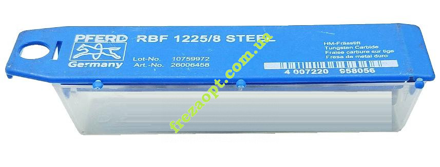 Борфреза має перехресні подовжені доволі грубі насічки для швидшого відколювання обороблюємого матеріалу. Конструкція виробу має сталеву основу з припаяною карбід вольфрамовою робочою частиною. Аналізуючи відгуки користувачів, рекомендовано використовувати її по чорному або кольоровому металу (окрім нержавіючої сталі). Також, вона без проблем буде гризти деревину і похідні матеріали (плити), але поверхня буде рваною (не охайною).Габарити та характеристики: